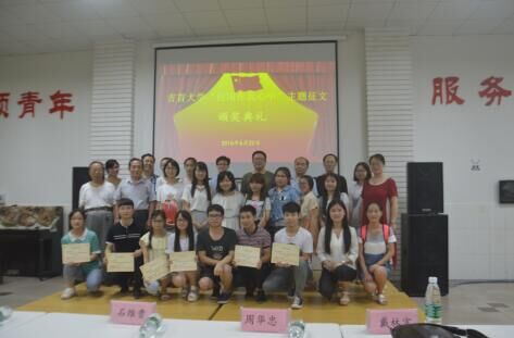 本网讯(员工记者 钟嘉丽)6月22日,“祖国在我心中”主题征文大赛颁奖仪式在校团委青年之家沙龙室举行。公司党委宣传部部长戴林富、校团委书记王艳、学工部部长周华忠、关工委石维贵和张和宇、公司公司党委副书记向军、院团总支书记任倩以及评委代表李端生等出席了本次颁奖仪式。 此次主题征文大赛校关工委、公司党委宣传部、校团委、学工部、素质教育中心主办,公司团总支承办。大赛历时一个月,通过评委打分以及吉大先锋微信平台投票之后,评选出了以公司张兵《感时颂》为代表的一等奖作品5篇,医公司黄怡琳《葬我于高山之上兮,望我河山》为代表的二等奖作品10篇,商公司曹婷《一生一世祖国情》为代表的三等奖作品15篇。